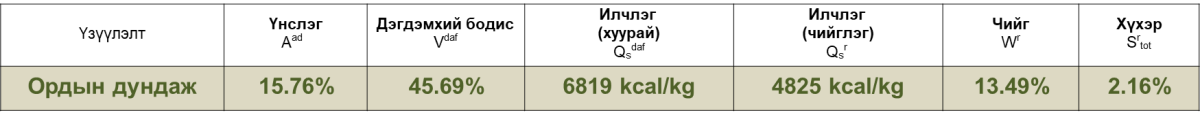- Нүүрсний чанарын дундаж үзүүлэлтүүд: